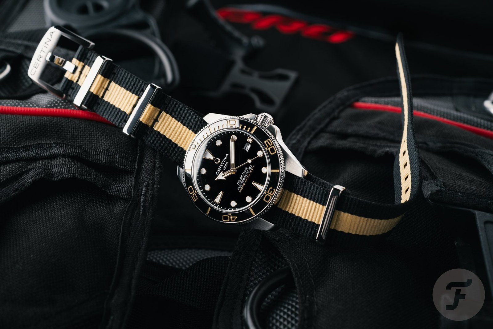 We had the model with a black dial and bezel with gold accents, which makes for a great-looking 40.5mm version. Usually, I would pick a diver on a stainless steel bracelet, but for this one, I love the black and golden-brown NATO strap. It gives the watch a proper luxury look.