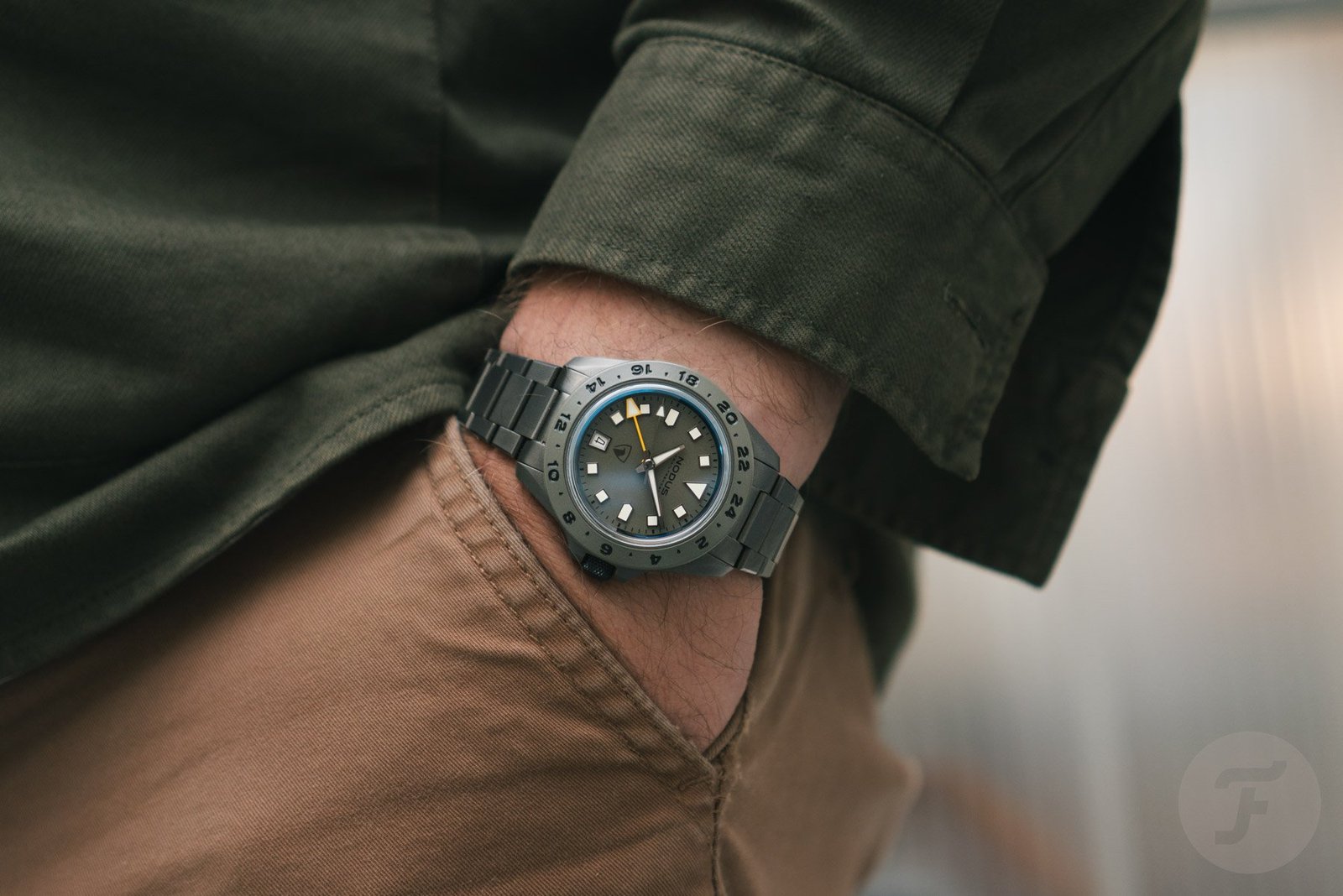 Inside the case, Nodus uses the Miyota 9075 caliber. This is a popular option for small brands because it offers the practicality of a flyer-style GMT movement. Additionally, it keeps the price affordable. It is a great power train for this stealthy military-style GMT, which is currently available for pre-order for US$900 (roughly €760).