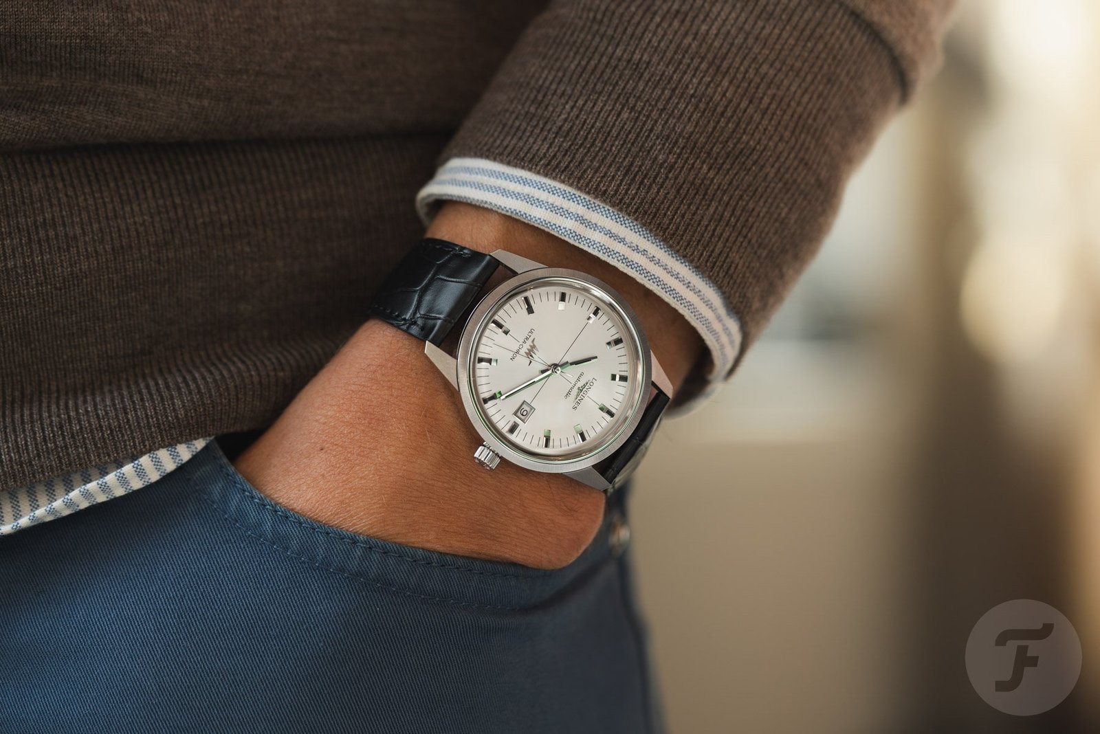 The new Longines Ultra-Chron Classic almost feels like a new-old-stock Ultra-Chron from 1967. However, with this re-edition, you don’t have to be afraid of scratching the crystal, and you can easily take it into the pool with you. I also quite like the newly designed five-row bracelet. The line through the middle links distinguishes it from the more common Jubilee-style bracelet, and the micro-adjustment system in the clasp is a convenient modern-day touch.