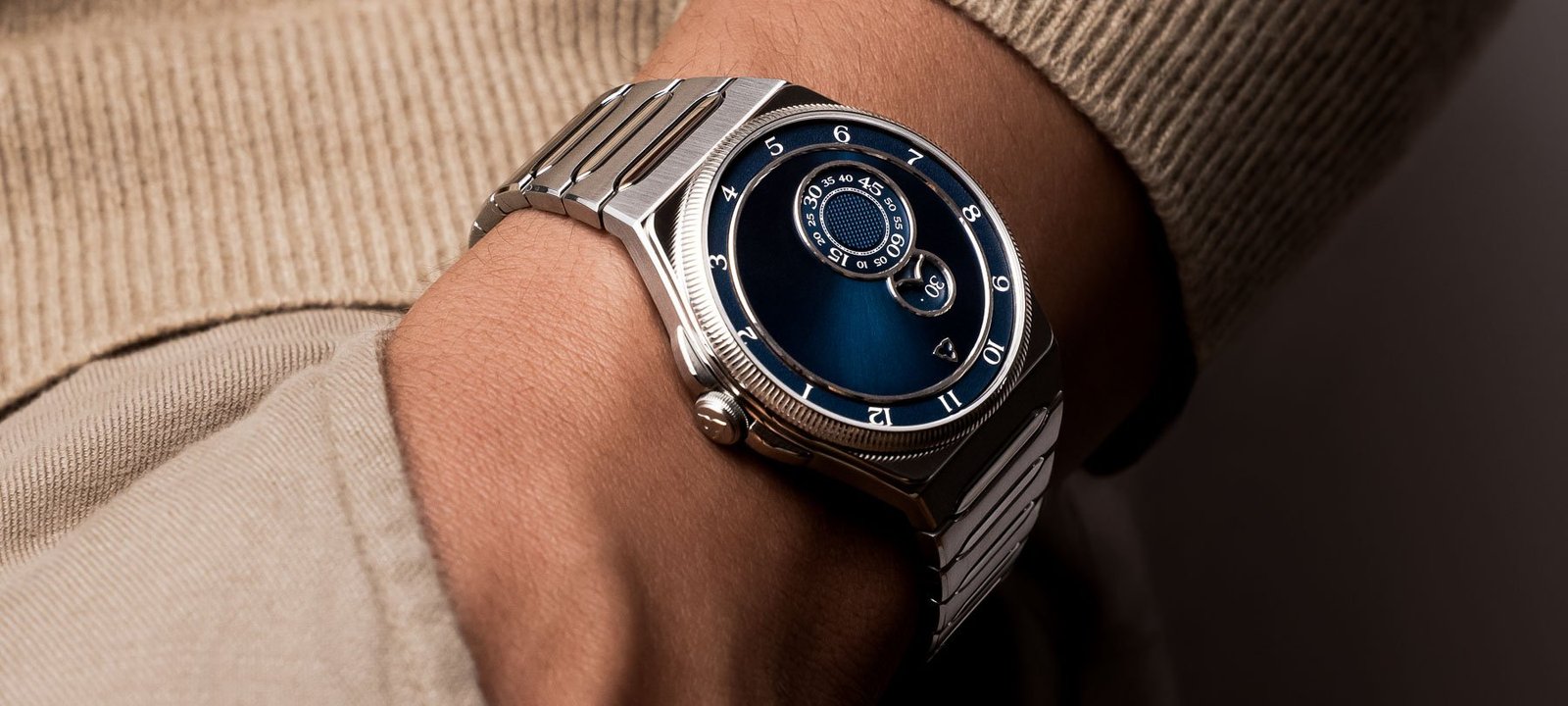 As watch fans, we’re used to seeing watches with unorthodox time displays. Most are interesting, but they often feel gimmicky. Trilobe, on the other hand, has created an off-center series of rotating discs that makes sense once explained. A popular early model, the Une Folle Journée, was particularly arresting with its tall, highly domed crystal and open-worked dial. As much as I liked it, though, the watch felt like a special-occasion piece. Today, with the introduction of the new Trente-Deux, Trilobe has evolved the concept with an in-house movement and a more wearable integrated-bracelet design.