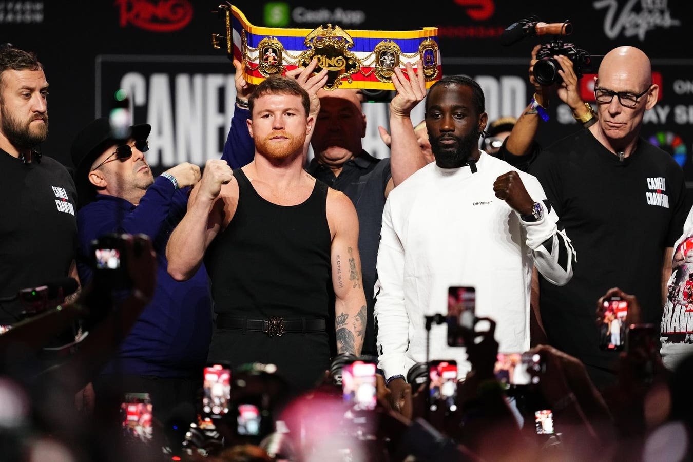 On the line on Saturday night in Vegas are Alvarez’s long list of super middleweight titles: IBF, WBA, WBC, WBO, and The Ring. Crawford, who holds the WBA and interim WBO super welterweight titles, moves up to 168 pounds to face Alvarez. The bout marks Crawford’s first fight at that weight.