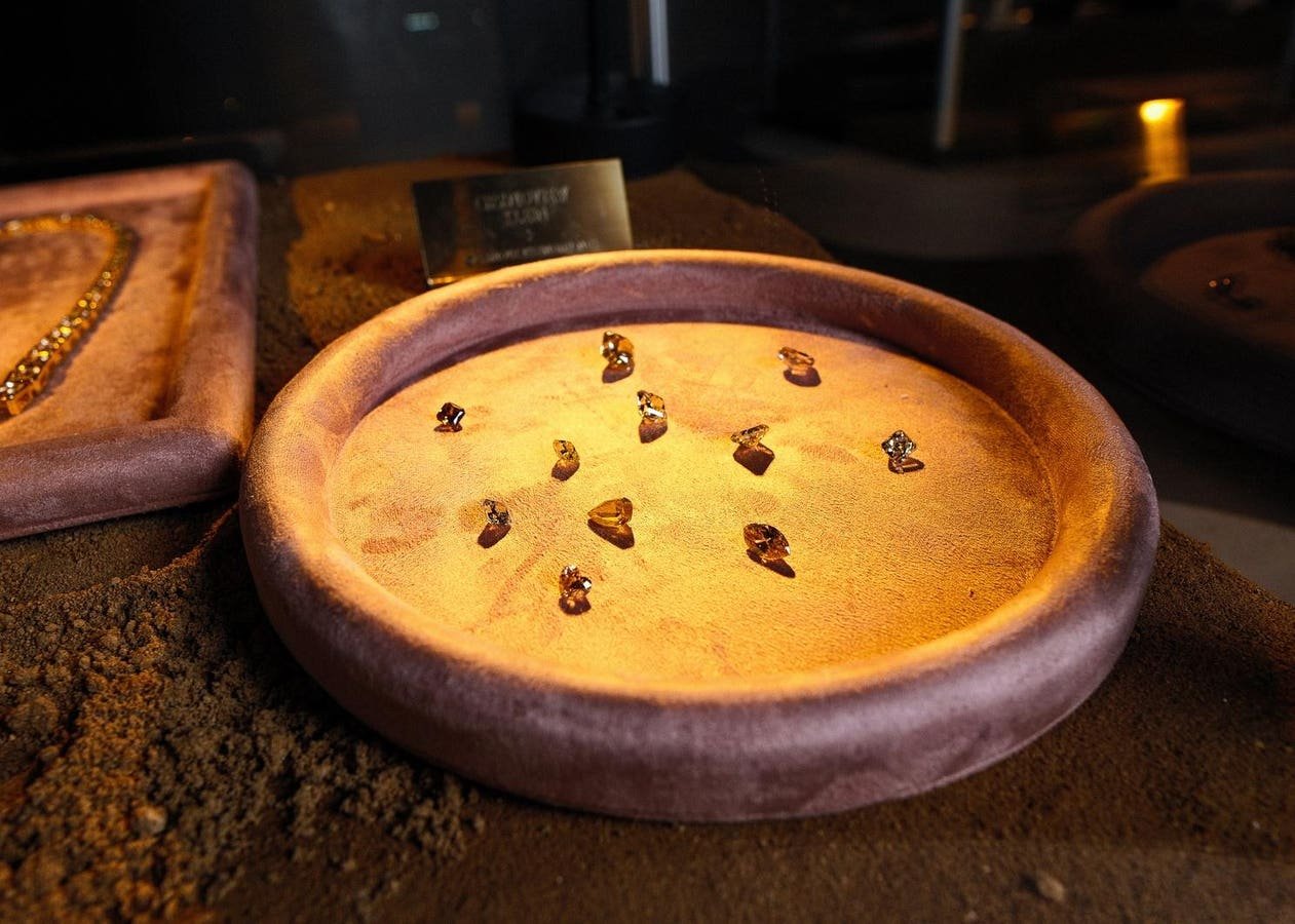 Julia Fox vies jewelry on display at the Desert Diamonds event.
