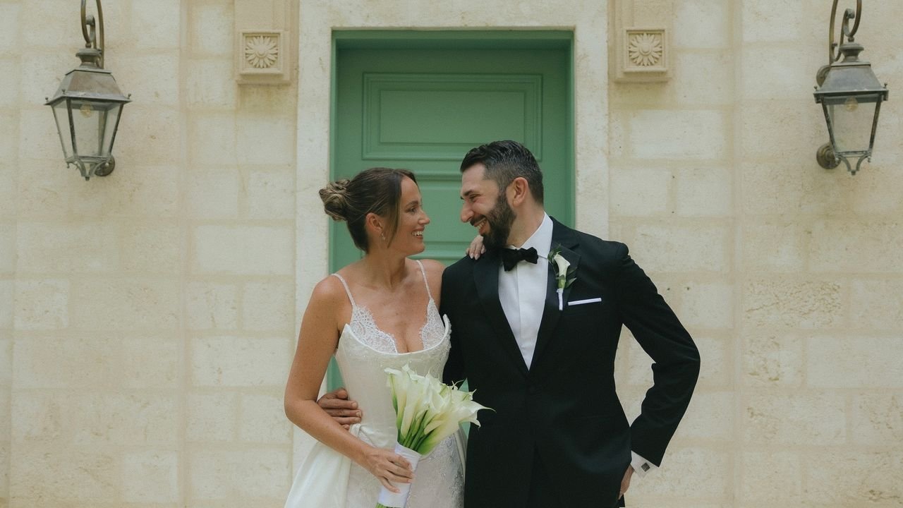 It was in the shadow of another mountain range, the Pitons of St. Lucia, that the couple (who are now based in the Miami-West Palm Beach area of Florida) were married this past May. Given their varied backgrounds—Ruben grew up in Long Island, New York, while Rebecca was born in Germany, raised in California, and has family in England—a destination wedding made sense. Plus, as Rebecca says: “We wanted something that was really personal, kind of cinematic, more intentional. We loved the idea of a full experience for our guests and ourselves.” Ahead, they explain how they plotted their intimate Caribbean celebration at a private villa for 47 guests, from finding a way around ‘island time’ to bringing Romanian touches into the celebration and a organizing a catamaran party under the stars.