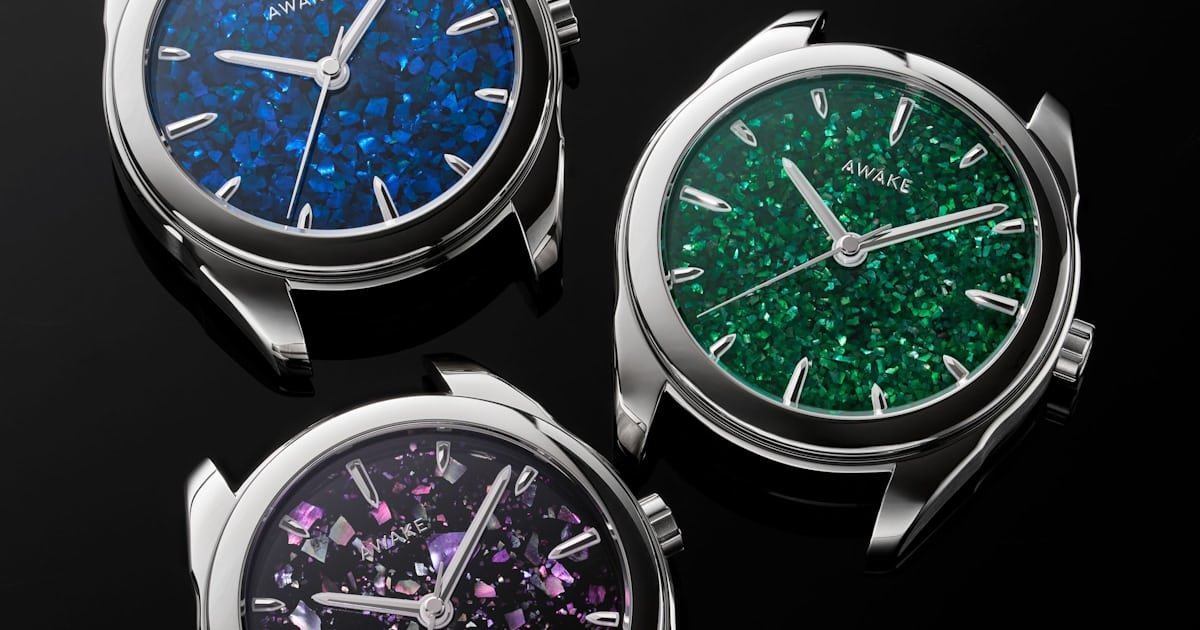 This collection features three references, each with a distinct dial color and varying sizes of mother-of-pearl fragments. This leads to dramatically different dials between the trio, with the green edition being the most intricate, the blue edition larger in scale, and the pink edition the most dramatic, featuring large pieces that contrast against more negative space.