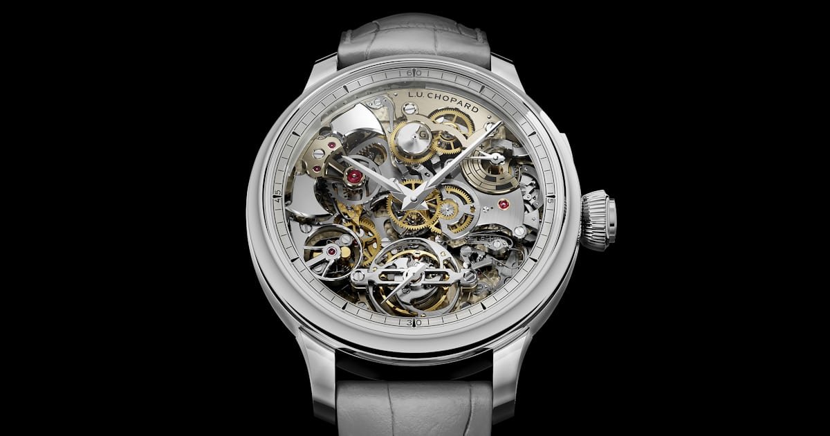 Yes, there is an exhibition caseback on this watch, but one look at the dial (or lack thereof) and you’ll understand the complexity of the new manually-wound 686-component caliber L.U.C 08.03-L. The depth of the front is something to behold, with the warmth of bridges and plates in German silver showing through. While it might seem overwhelming at times — admittedly, legibility doesn’t seem to be a priority with this endeavour — the architecture of the movement still ensures that all the necessary information is displayed. Below twelve o’clock, the aperture of a small disc reveals the current sonnerie mode (via “P” for petite, “G” for grande, and “S” for silent), while to its right sit the power reserve indicators. There are two, for each of the caliber’s mainspring barrels — one for the timekeeping functions and one for the chiming complications. The movement is rated to 70 hours of runtime, while the grande sonnerie mode is rated to a minimum of 12 hours. On the indicators, a handstack with two polished and faceted hands shows the level of each barrel and if it’s time for you to wind the watch.