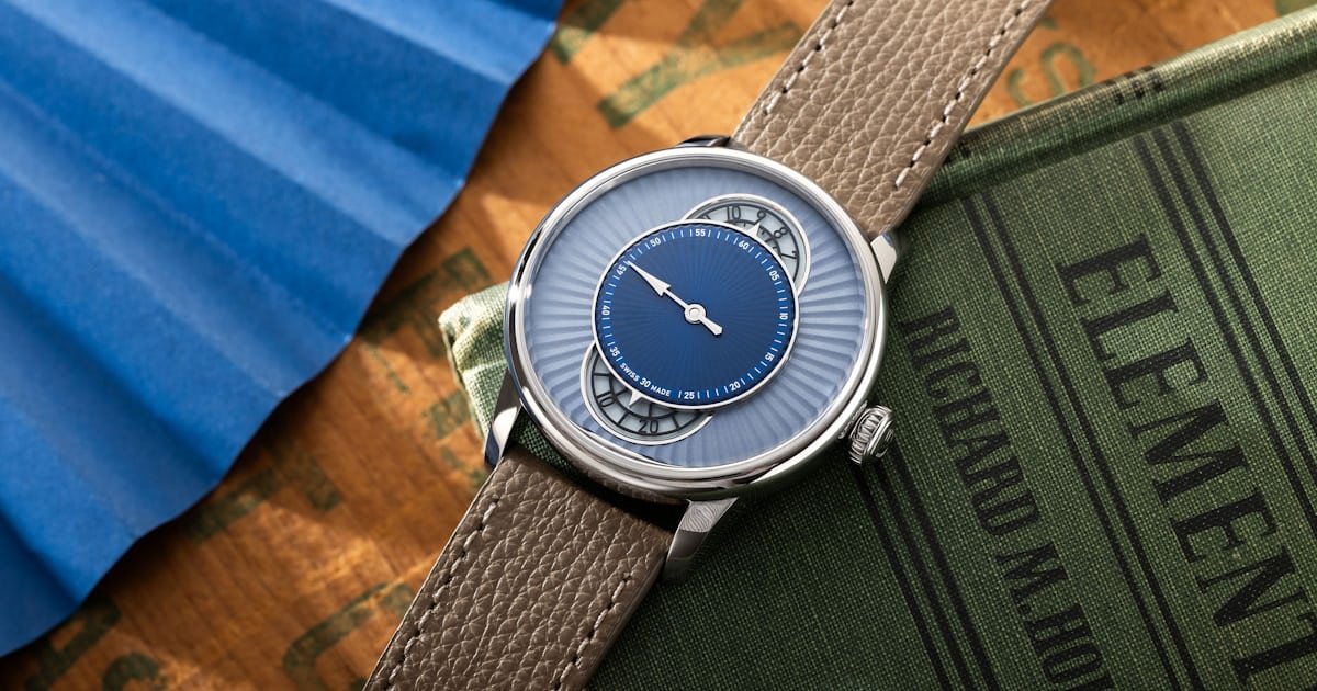 The case is delivered in polished 316L steel and offers a svelte profile, a backdrop for the rather unique layout of dials, or in this case, layers. All centered, the top layer is complemented north and south with a background layer of open-worked hour and second disks. The rather straightforward minute hand, which is inspired by Louis Erard’s “fir tree” design, is the only hand on the watch. The hours and minutes are disks that rotate themselves, which I can only imagine would be quite mesmerizing to see on the wrist.