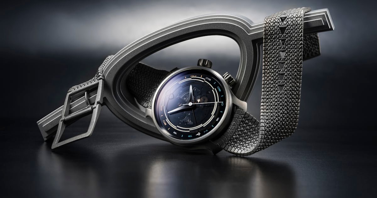 Just as the flying blade lugs are quintessential parts of Ming design, so too is the interesting dial. The brand has opted for a smoked sapphire main dial, featuring an inner rotating, bi-directional, clickable 24-hour bezel with blue and orange-emitting Super-LumiNova X1 indices (color-coded for day/night indication).