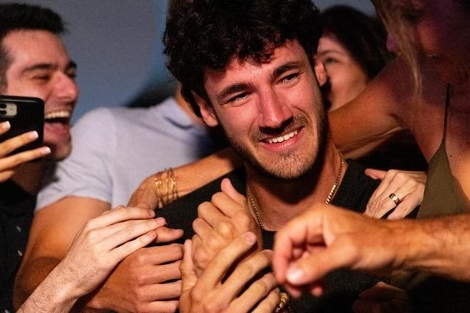 VIENNA, VA – JULY 9: Madison High baseball star Bryce Eldridge, surrounded by family and friends, reacts after being selected 16th overall by the San Francisco Giants in the MLB draft on Sunday, July 9, 2023. (Julia Nikhinson/For The Washington Post via Getty Images)