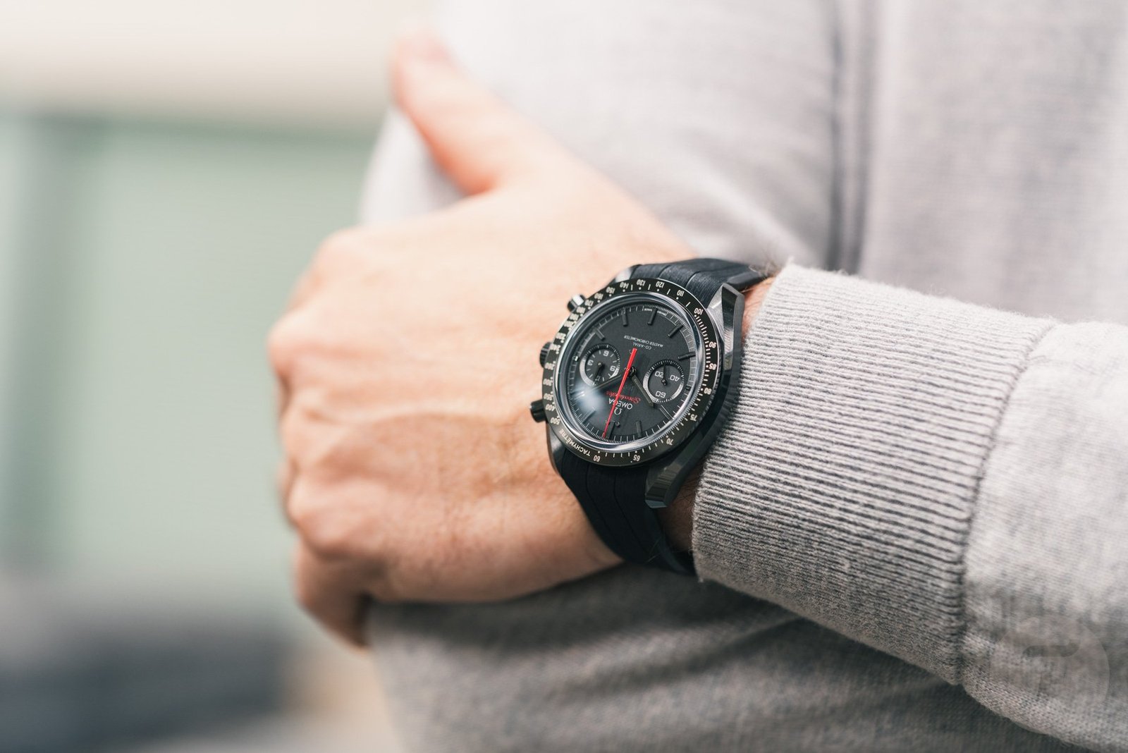 It was tough to take these watches off in the last couple of days. I thought that large watches weren’t for me anymore, but the black cases and dials make them appear smaller than they actually are. Additionally, the rubber strap adds so much comfort that all big-watch worries disappeared like snow in the sun. That said, the Speedmaster Dark Side of the Moon does look big on small wrists, so in the end, it’s a watch you should try before buying. It’s all a matter of preferences, certainly not of discomfort, which is no question with the Dark Side of the Moon on a rubber strap. Finally, Omega has notified us that all previous Dark Side of the Moon models (except for the Apollo 8) will be discontinued immediately.