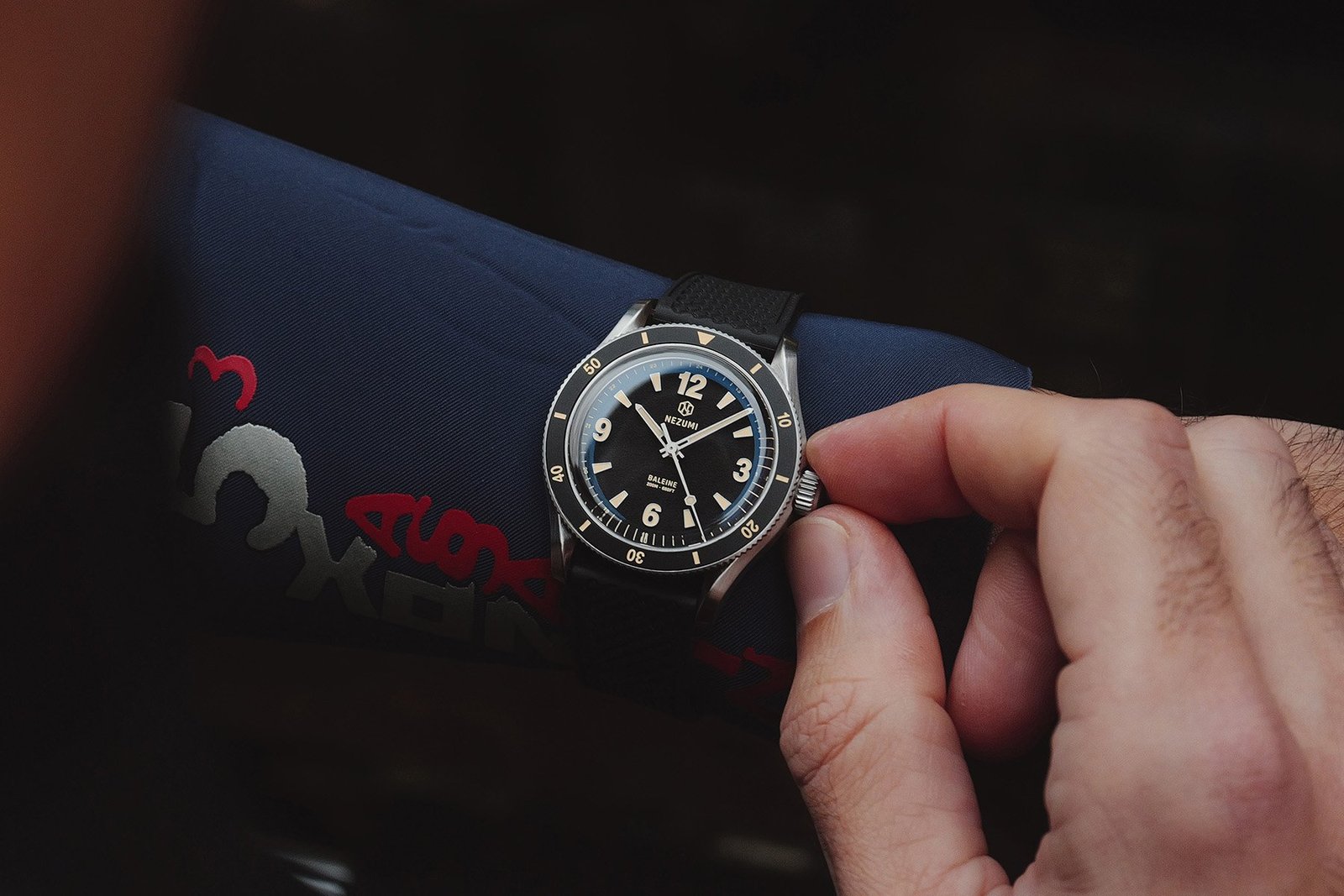 Nezumi Baleine dive watch in hands