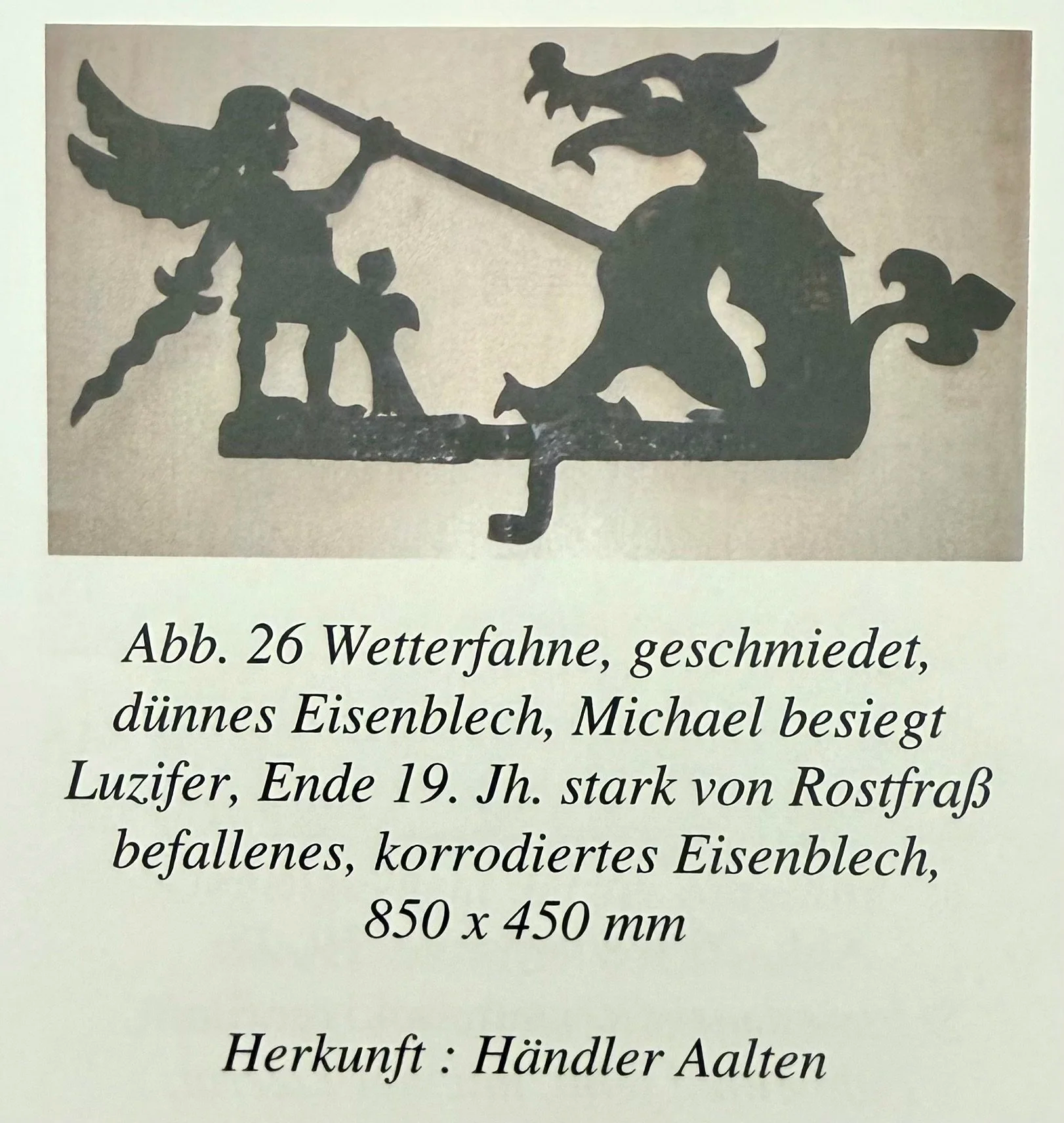 Another curiosity is a book whose title translates to “Church Steeple Weathercocks and Weather Vanes in Everyday Life and in Art History” (it probably reads better in the original German.) Josef H. Schröer, the book’s author, founded a museum of weather vanes from his own collection. His wife, Ina, writes in her foreword to the book that the “specimens” joined the family gradually over 40 years, and that over the course of that time “they…also crept into my heart!” I can see this must be true because the book also includes a poem on the same topic by Ina.