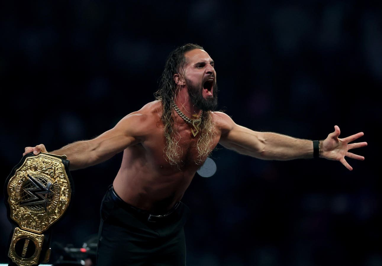 EAST RUTHERFORD, NEW JERSEY – AUGUST 02: Seth Rollins celebrates after winning the WWE World Heavyweight Championship after cashing in his Money in the Bank contract to take on CM Punk during the WWE 2025 SummerSlam at MetLife Stadium on August 02, 2025 in East Rutherford, New Jersey. (Photo by Elsa/Getty Images)