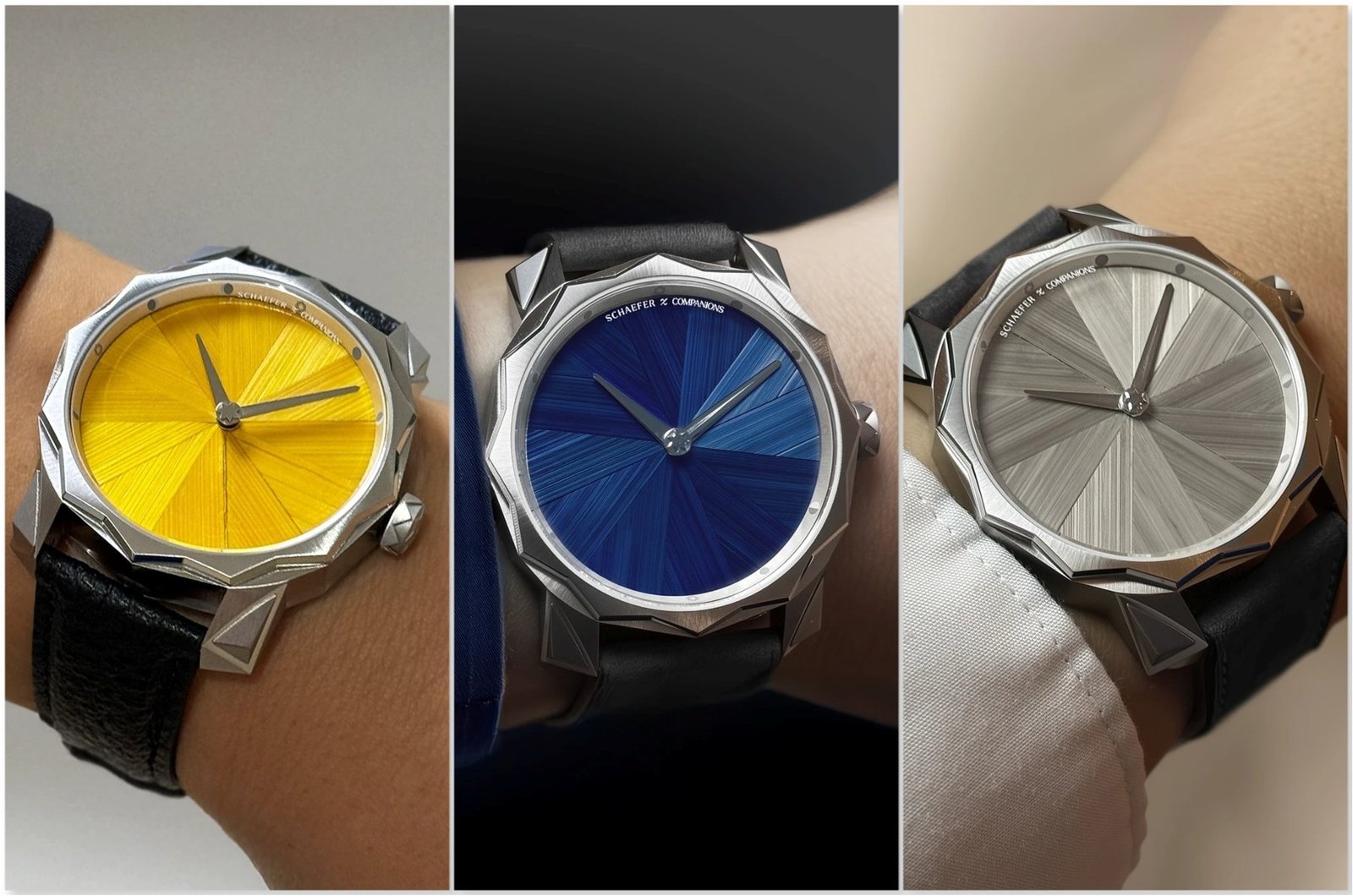 Schaefer & Companions Solune Grand Art Marqueterie: Three watches with straw marquetry dials