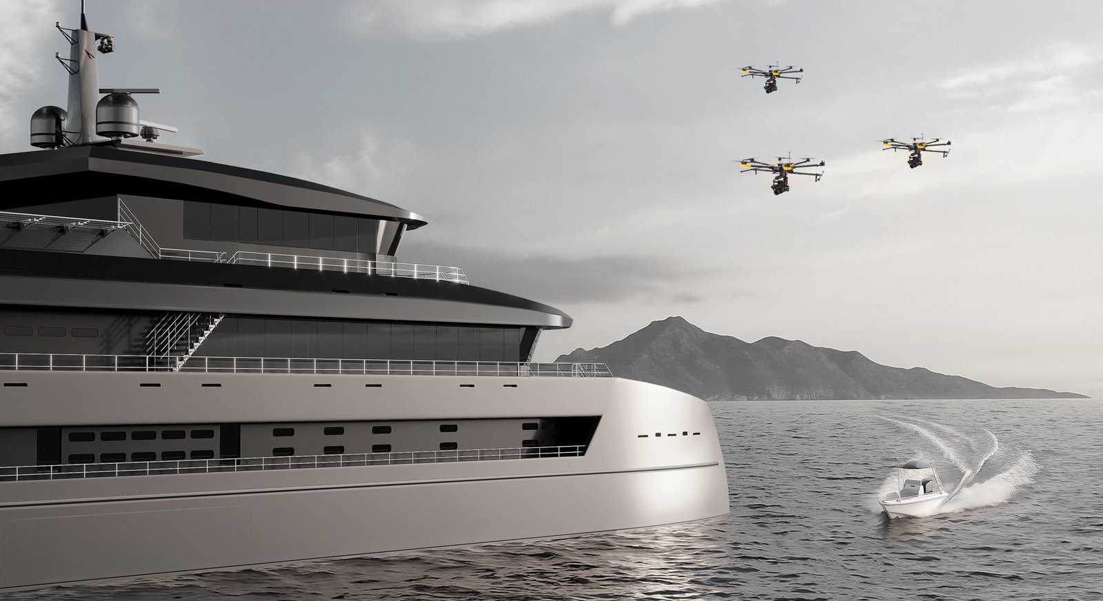 Furthermore, integrated technology aboard Sentinel allows for counter surveillance, tailored to different regions of the world, to block electronic and/or digital intrusion. The surveillance system also feeds encrypted information to autonomous and piloted drones carrying out aerial and surface investigations. All of this works alongside radar, long-range optical sensors, and long-range thermal sensors. Altogether, the idea behind the Sentinel yacht concept is to keep owners safe and apprised without disrupting their or their guests’ onboard experience.