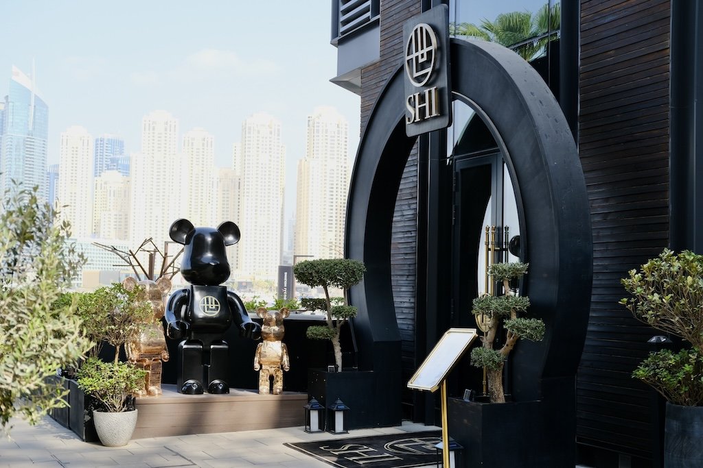 SHI is a modern Chinese restaurant nestled on the upscale of Bluewaters Island. Giant BearBrick sculptures greet you at the entrance of the restaurant, subtle nods to Chinese heritage with zodiac motifs, bamboo, dark woods and velvet touches. You also find a live saxophonist playing in the background for the weekend brunch. One of the biggest draws is the sweeping views of the Dubai skyline, an up‑close glimpse of Ain Dubai, and the waterfront vibes add a breezy, relaxed sophistication to the brunch. Dynasty brunch is an indulgent spread of appetizers, sushi, dim sum, Peking duck rolls, signature mains, dessert platter along with your free flowing drinks.