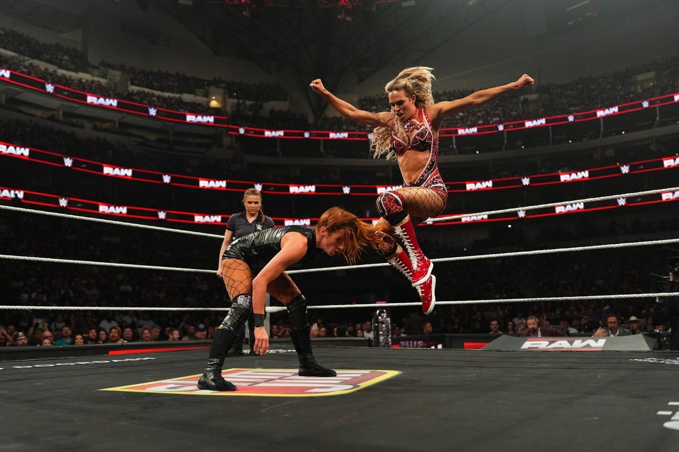 DALLAS, TEXAS – OCTOBER 6: Maxxine Dupri in action against Becky Lynch during Monday Night RAW at American Airlines Center on October 6, 2025 in Dallas, Texas. (Photo by Cooper Neil/WWE via Getty Images)