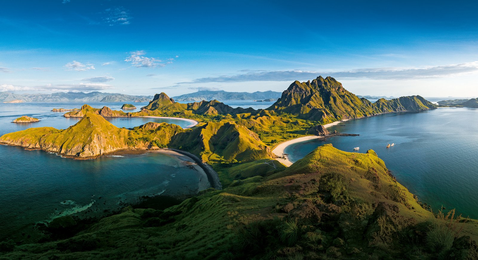 Last but certainly not least, Edgeworth says, “Indonesia’s Komodo National Park is a cinematic spectacle of rugged volcanic hills and private beaches.” The park includes Rinca and Komodo Islands (top), which are replete with Komodo dragons. It also includes Padar Island, which she recommends hiking at dawn for breathtaking views. If you’re a diver, Manta Point or Batu Bolong is a must, for thriving coral and manta rays. Venture further north to Raja Ampat (above), with its labyrinth of limestone islets and marine biodiversity, to dive mirror-calm lagoons. Your yacht’s crew can treat you to beach barbecues in hidden coves as well. Speaking of the yacht, traditional wooden phinisis are available, as are more modern choices. Regardless, you’ll cruise in style in Indonesia, discovering black coral reefs and more.