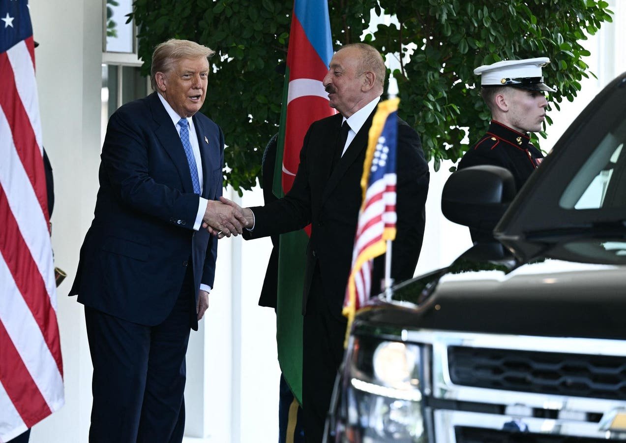 US President Donald Trump greets Azerbaijani President Ilham Aliyev at the White House in Washington, DC on August 8, 2025. The relationship between the U.S. and Azerbaijan is an increasingly vital one for Washington.